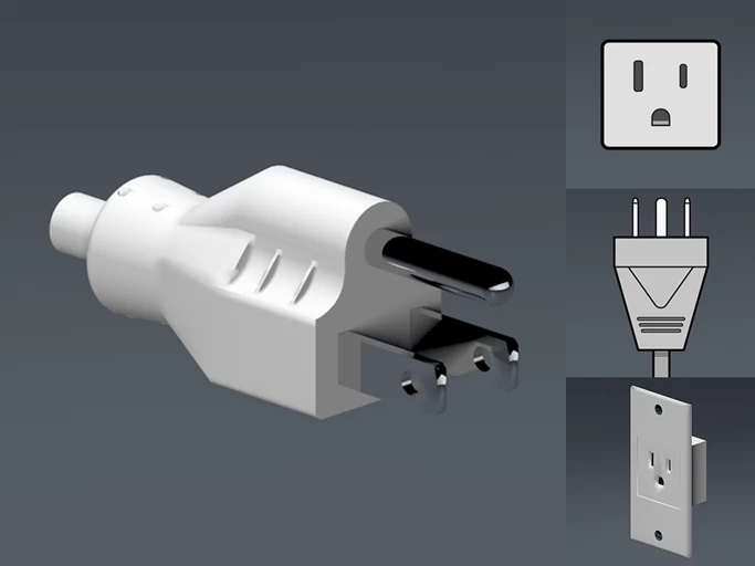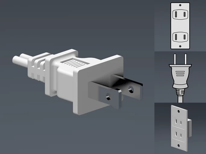 The Type A electrical plug (or flat blade attachment plug) is an ungrounded plug with two flat parallel pins. Although the American and Japanese plugs appear identical, the neutral pin on the American plug is wider than the live pin, whereas on the Japanese plug both pins are the same size.