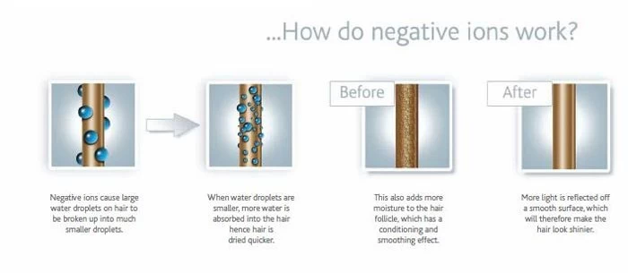 We all know that negative ions do good for hair, leave it shine, smooth and healthy. But how do the negative ions function on our hair?