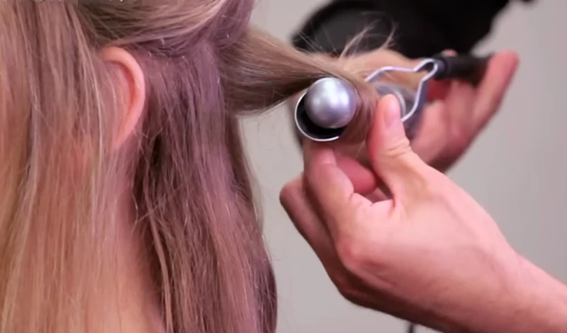 Take a small section of hair, brush your hair smooth and nice, clip the top of the hair via hair iron clamp, start at the roots, slowly roll the hair around the curling iron: