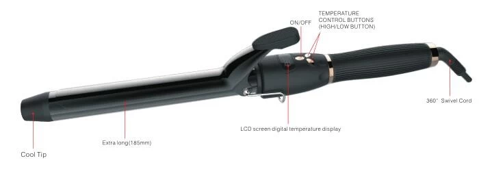 Professional extra long barrel LCD screen curling iron with silicone handle for soft touch
