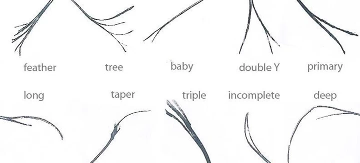 Split ends are a common occurrence in persons with long hair. I am pointing out the five most common types of split ends and what they indicate about your hair.