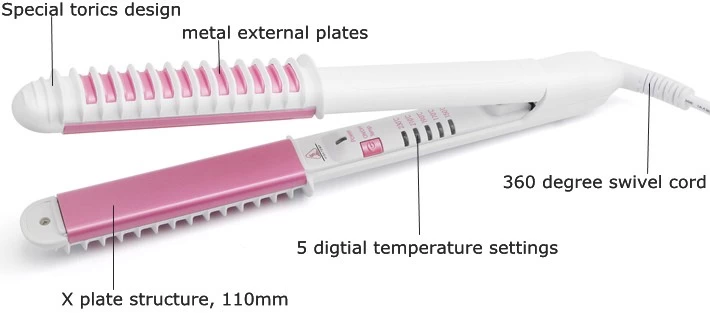 F601HX, the X styler, 2 in 1 hair straightener and curling iron, is a multifunctional flat iron. It cannot only straight your hair, but also makes curls. The perfect tool for styling versatality.