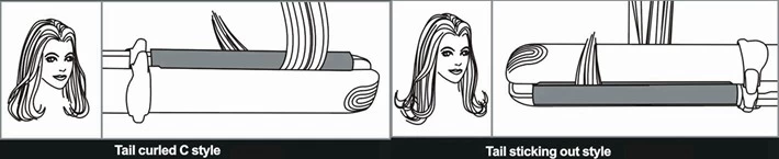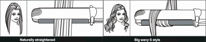 For styling, select the suitable temperature, put the hair between the two heating plates and wrap it around the plate in different angles for different styling results( in the attachment). Hold the hair for a few seconds for a better styling result.