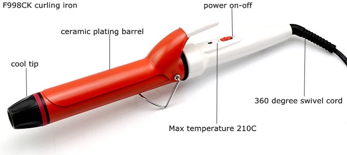 F998CK high quality hair curler for home use, hot selling simpe curling tong, basic model hair curling tong, ceramic barrel hair curler