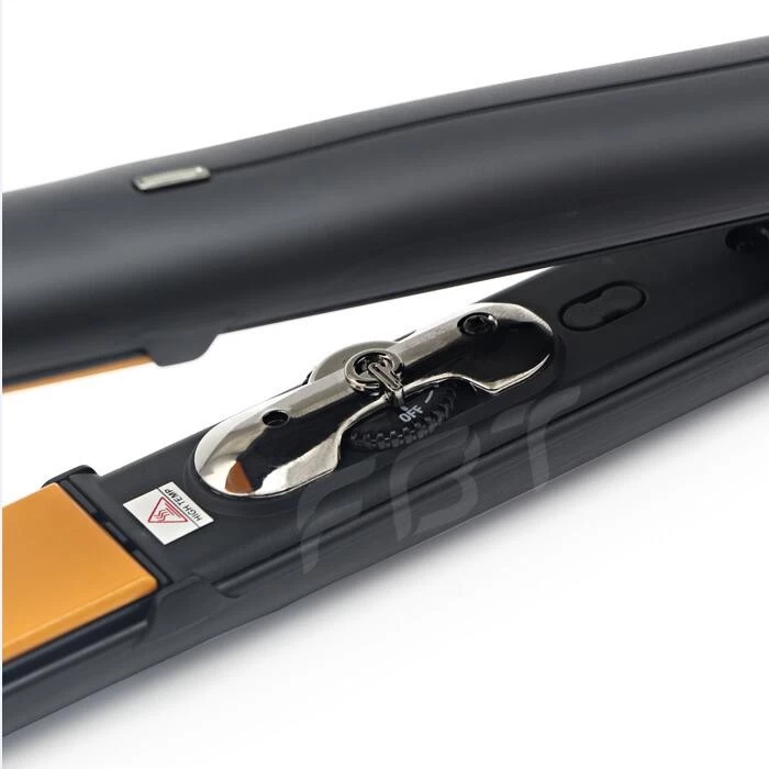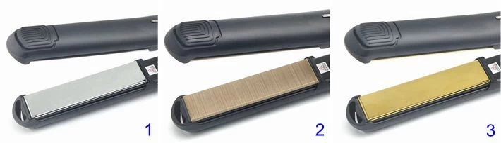 EHS-7422 with 5 digital temperature display (EHS-7422 B): The plates of hair straightener EHS-7422: Also, other kinds of plate are available for this hair straightener, such as: tourmaline ceramic plate, gold plate( or other kind of color), crimp plate, titanium plate or mirror titanium plate, fabric plate etc with different usage. This professional hair flat iron can be home used or professional salon used. For Shell, FBT provide injection shell with all kinds of color for option, or shinning painting and rubber painting which makes the products looks more elegant. Good quality hair styling iron for choose. 1—– mirror tatinum plate 2—– fabric plate 3—– gold plating plate ![]() Marketing selling points: * 2pcs MCH heaters to speed up the temperature very fast * Reach to real high temperature to 240C, 470F * Diamond plate finish, super smooth, much grip but never pulls hair * Keratin, tourmaline and nano-silver infused * Morrocan oil plate makes healthy hair * Good for keratin treatment, straightening and styling * 24mm, 1 inch plate most popular ![]() How to use it: EHS-7422 hair straightener is not only a simply hair straightener, but also can curling hair as below. So how to use it? EHS-7422 high temperature used the high quality MCH heaters and can speed up to real 240C(470F) very fast, Turn on the switch then 15″ can start to work. Below is the simply picture show you how to use the hair flat iron make the beautiful straight hair and curling hair. ![]() Package and delivery: