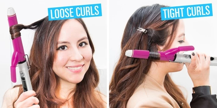 1. For tighter curls, a small-barreled iron is your best choice, for loose curls, try a large size of barrel iron.