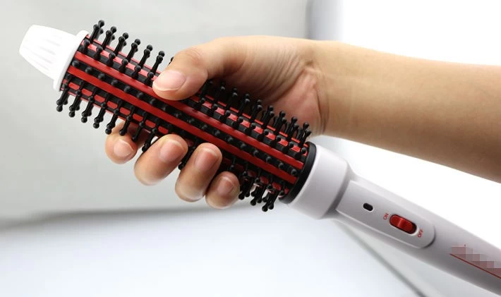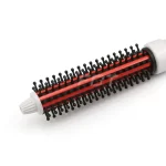 ESC-8317 wholesale hair care heated brush, hot roll brush for fine hair, thin hair, hot roller brush, heated roller brush, heating brush. It is with with white painting handle and red thermal ceramic barrel.