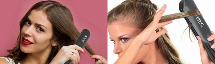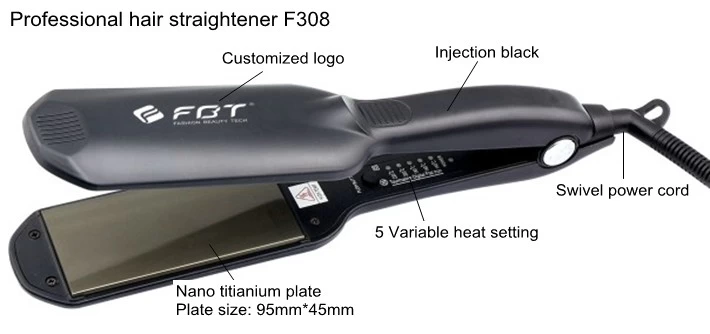 Professional hair F308A hair straightening flat iron, but not only also available for volume and curls. High quliaty PTC heater system, andDigital readout with variable heat setting.